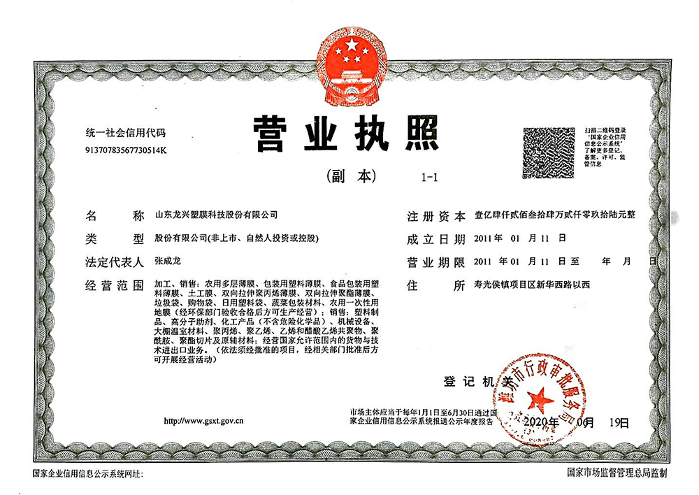 山東龍興塑膜科技股份有限公司前身為山東壽光龍興農膜有限公司組建于2011年,2018年10月重組,目前是壽光市國有控股公司、高新技術企業(yè),是專業(yè)生產高檔農用薄膜、工業(yè)用薄膜的企業(yè),是一家以產品制造為主,集科研開發(fā)、產品設計、技術服務于一體的綜合性企業(yè)。公司現(xiàn)有職工228人,各類工程技術人員97人,管理人員20余人,注冊資金14234.2096萬元,總資產102314萬元,目前是壽光市國有控股公司、高新技術企業(yè)。公司是中國塑料加工工業(yè)協(xié)會農膜專業(yè)委員會會員單位,中國復合材料工業(yè)協(xié)會會員單位,中國塑料加工工業(yè)協(xié)會雙向拉伸聚酯薄膜專業(yè)委員會會員單位...